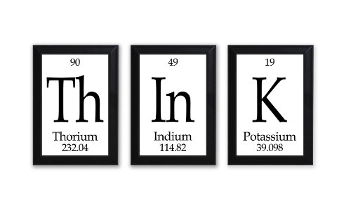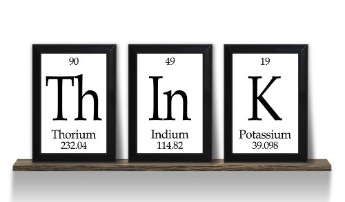 Think Periodic Table of Elements Plaques - Think Wood Sign - 3 Pc Set - Each 5"x7" - Geeky Home Decor