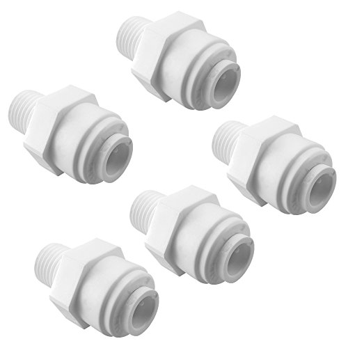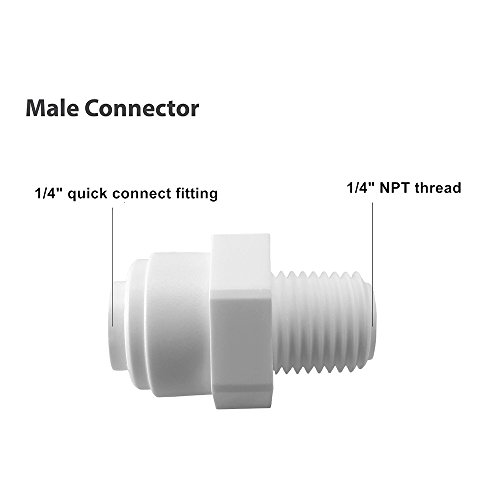 PureSec 2017 MSA1414 mini white plastic quick fitting straight male NPT push connector for tubing OD 1/4" used for RO system refrigerator ice maker coffee machine( Pack of 5)