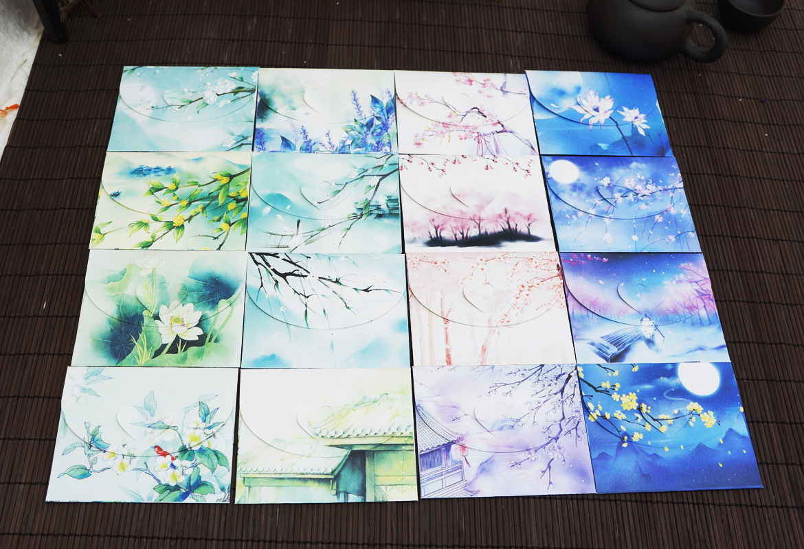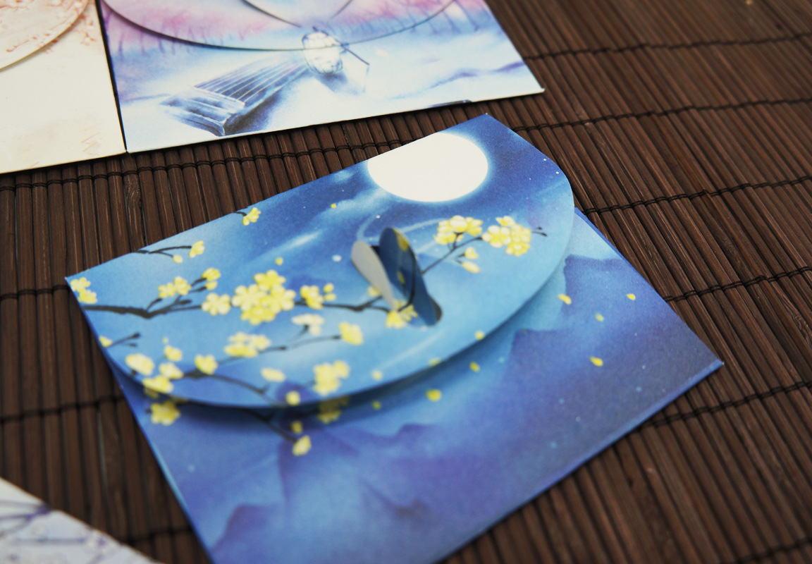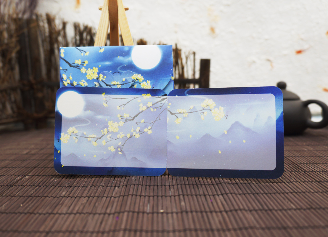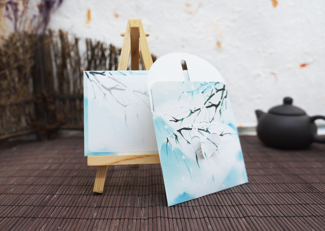 古风贺卡小卡片留言卡小信封 中国风复古创意生日卡 祝福手绘请柬