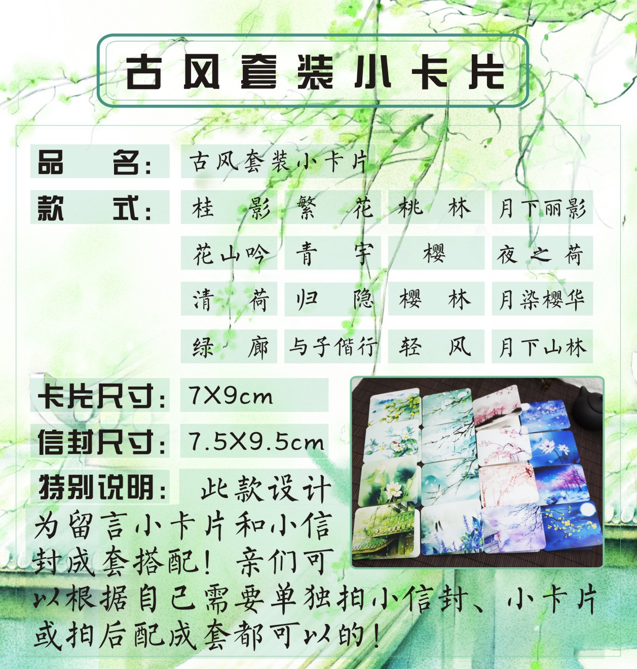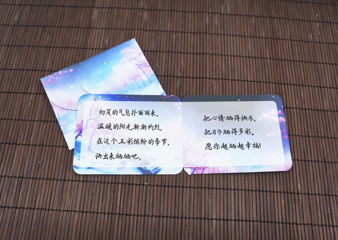 小贺卡展开尺寸:7*18 对折后尺寸:7*9 信封尺寸:7.5*9.5