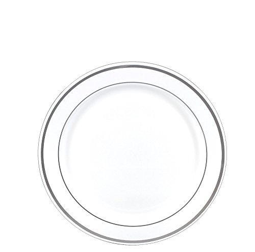 Gourmet Home Products 24 Count Premium Reusable Heavyweight Plastic Salad Plates, 7.5", White/Silver, Traditional Metallic