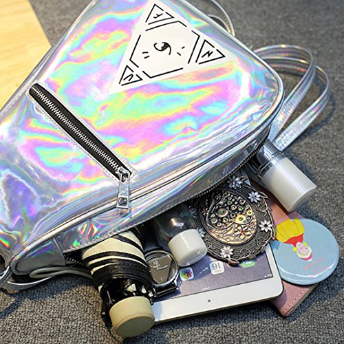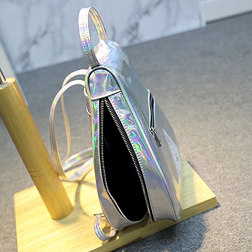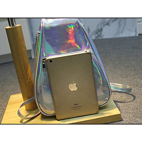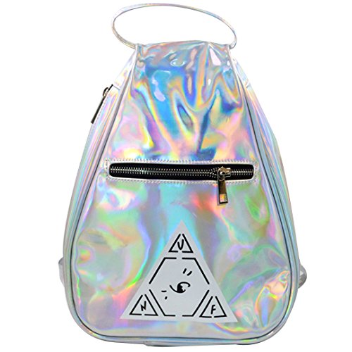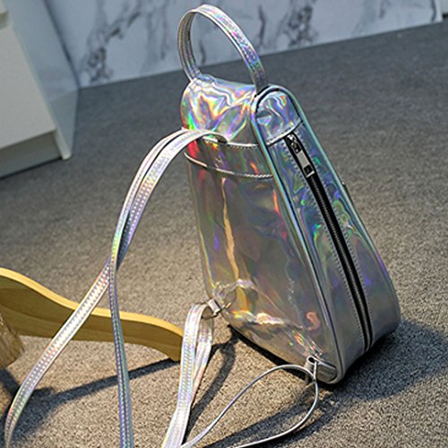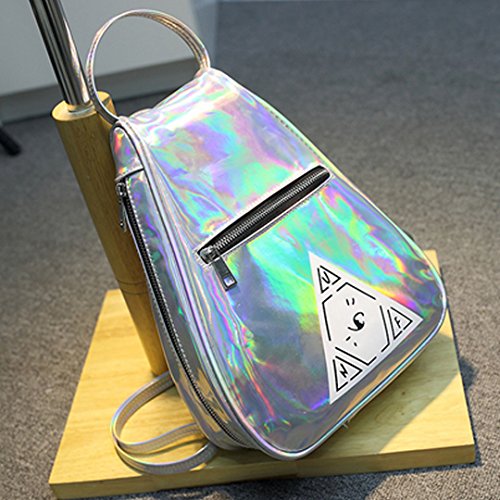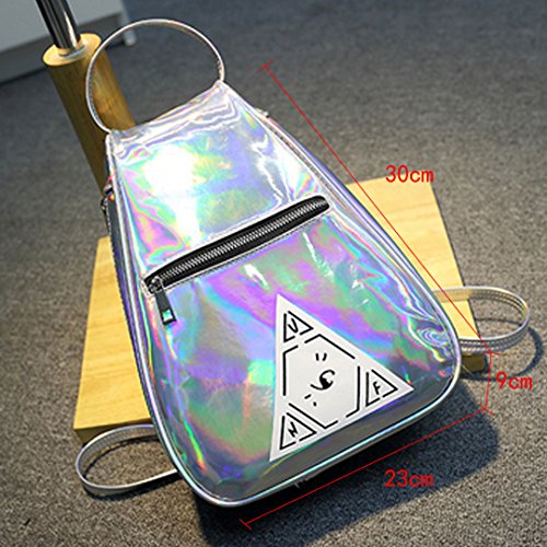 -. Feature : Material:Laser synthetic leather for laser silver one, quality PVC for transparent one / Purse Dimension: bottom length 9.1in, thickness 3.5in, height 11.8in, Compact and with ample storage space, this makes for an efficient see-through backpack. / Transparent see through and Laser reflection design, unique triangle and eye P.R.Int; unique, eye-catching and water resistant / This backpack comes with a zipper closure at the side and one zipper pocket on the front for your convenience and to keep everything organized. / Please Note: Backpack colors vary with light change