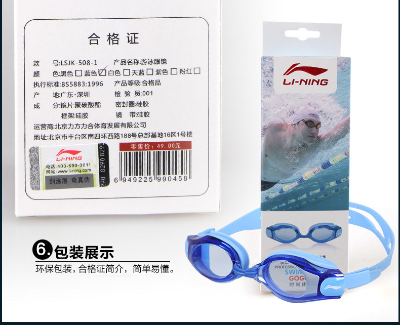 - 李宁青少年泳镜 防水防雾高清泳镜 儿童游泳眼镜游泳装备