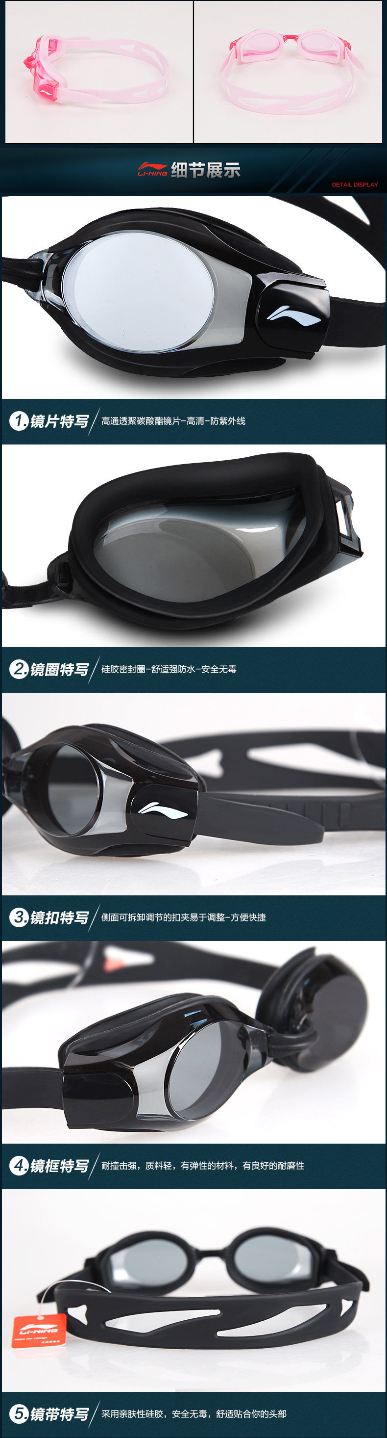 - 李宁泳镜 休闲防水防雾泳镜男女 高清游泳眼镜专业成人游泳装备