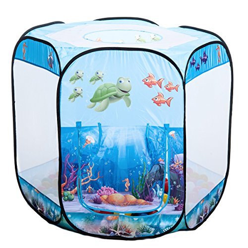 Aussergewoehnlich.de UW-HB UNTERWASSERWELT 6-eck Ballebad pop up Zelt mit 100 bunten Ballen in 10 Farben