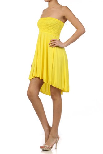 Soft rayon with elastic bust 65% polyester 35% rayon Made in USA Machine or hand wash cold Can be worn as dress, skirt, or cover up Brand : Modern Kiwi Item model num : SEP-A687-Yellow-Large