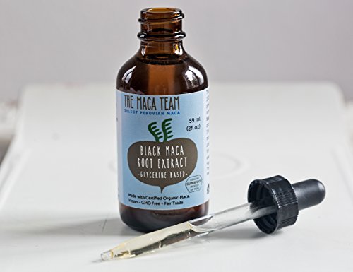 Our Black Maca Extract is made from our certified organic Peruvian grown Black Maca root Powder traditionally grown and harvested on an organic farming co-op in a remote pristine part of the Peruvian Andes It is never heated above 106 degrees F in order to preserve nutrients at maximum levels. Scientific research has found Black Maca to have some important properties among all Maca colors. A 2009 study in Peru found Black Maca to be the best for increasing sperm count and motility as well as for boosting male libido. A Swiss study from 2010 showed Black Maca to excel at protecting bone structure and preventing osteoporosis. 2 studies from China in 2006 and 2011 found Black Maca to be superior for increasing memory, concentration and learning. And a UK study from 2011 found that Black Maca supported muscle growth. We generally recommend Black Maca for men looking to increase libido and performance, for students looking to boost mental sharpness and for anyone working to increase muscle size or athletic performance. The major benefits of Maca extracts over powder or capsules include: freshness and longer shelf life, better bioavailibililty of nutrients, ease of use and faster absorption results. The Maca Team, LLC is dedicated to preserving and sharing high quality Peruvian grown Maca with the world. As a family run company of Maca specialists, we're here to bring you the most Maca has to offer. We are proud to source and sell the best selection of high quality Peruvian Maca in the world. All of our products are always organically grown, fairly traded, GMO-free, fresh and potent. We sell 8 different kinds of certified organic Maca, raw and gelatinized (pre-cooked), in a variety of sizes, in vegan capsules and extracts. Please see our seller profile for more details and links to our products. Thank you for considering The Maca Team. Enjoy your day!Feature