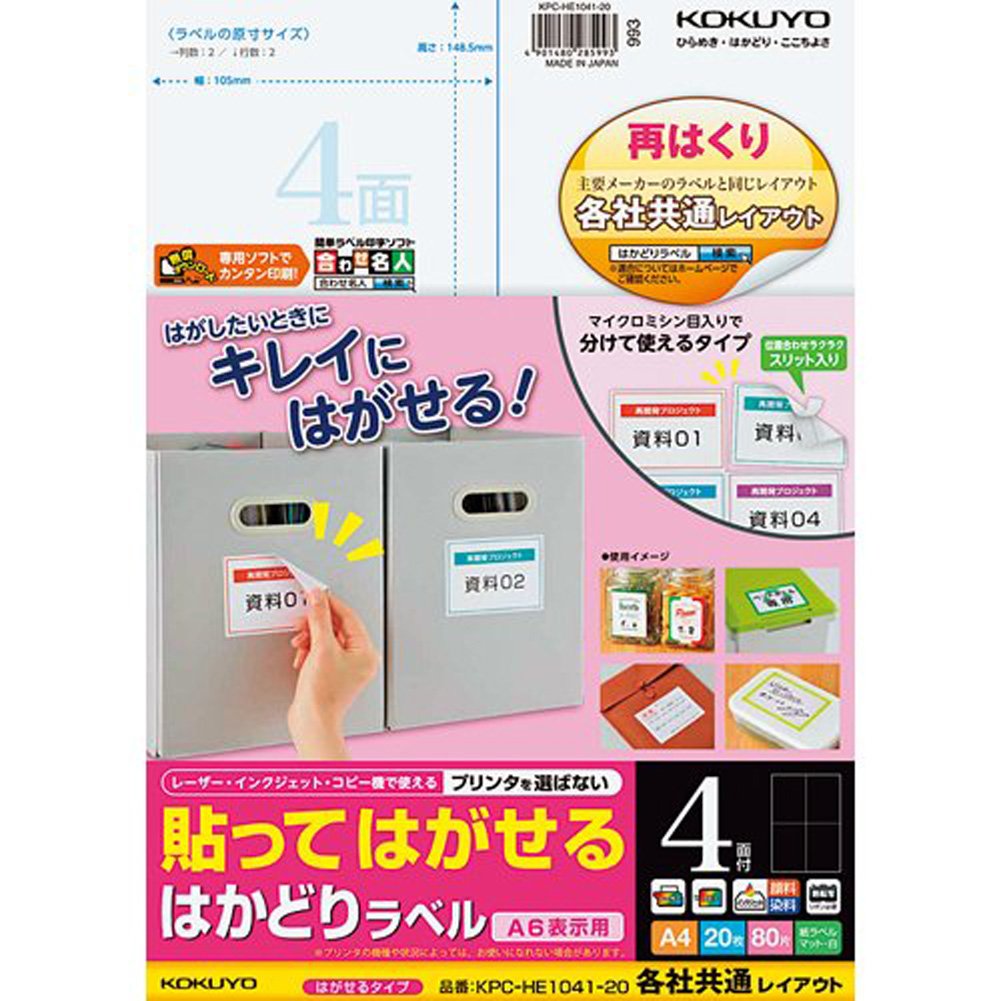 Type KPC-HE1041-20 to peel off and put Kokuyo cardboard Oricon corresponding label seal surface 4 laser inkjet support both (japan import)