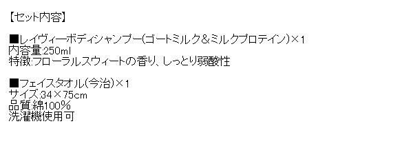 | 生産国 | ボディシャンプー:マレーシア、フェイスタオル:日本 |