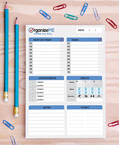 OrganizeME Daily Planner and Day Organizer To Do List Pad (Size A5) – 100 Tear-Off Planning Sheets with Pull Off Grocery and Notes Tabs – Track Chores, Tasks and Appointments