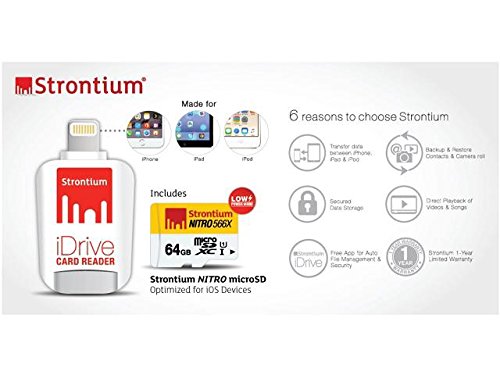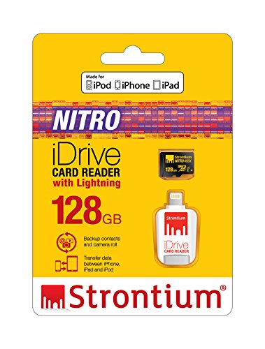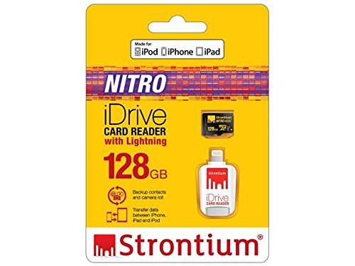 Strontium NITRO 128GB Micro SDXC UHS-1 Memory Card with iDrive Card Reader with Lightning connector for iPads, iPhones and Computers - (SRN128GTFU1D)