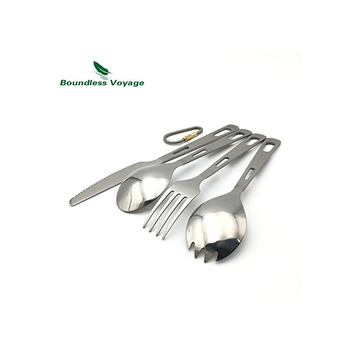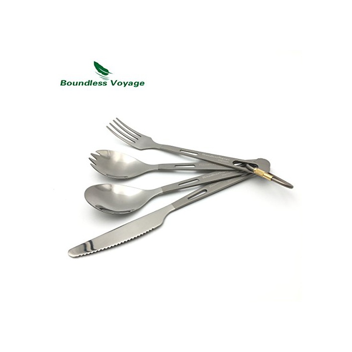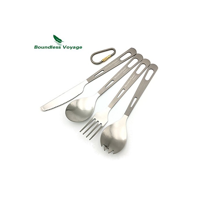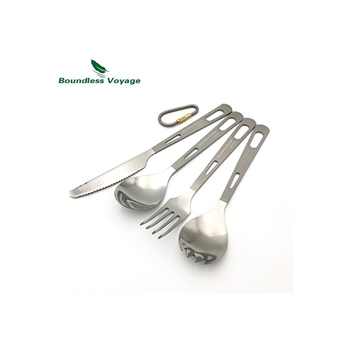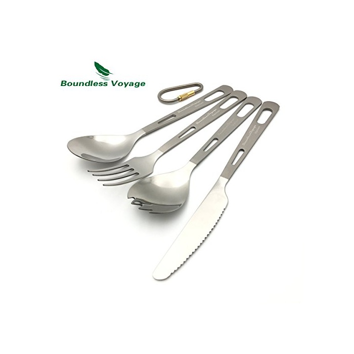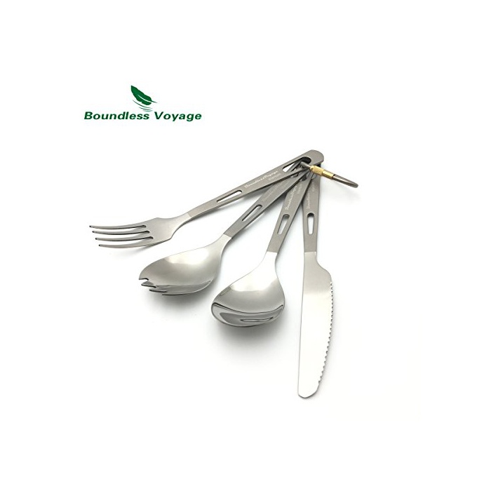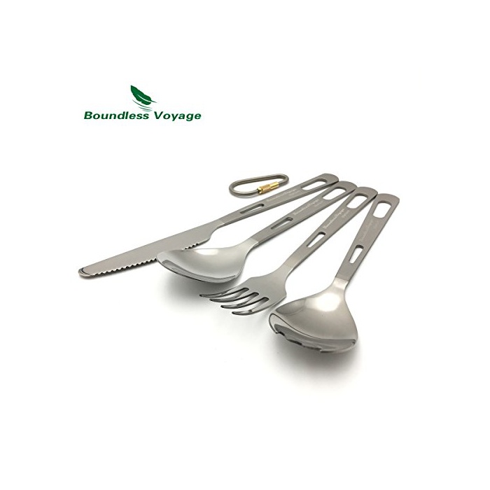 Boundless Voyage 초경량 티타늄(티탄)제 4점 세트 커트러리 포크 / 스푼 /나이프/처(먼저) 붕괴 스푼 식기 아웃도어 조리 기구 캠프 용품