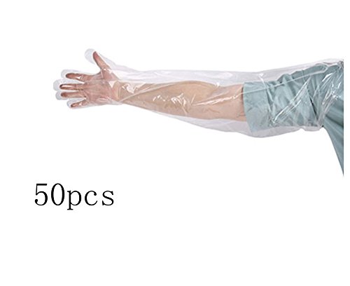 50pcs Disposable Veterinary Insemination Rectal Long Gloves Long Full Arm 85cm for Veterinary,white
