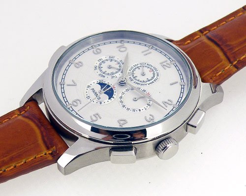 -. Feature : Classic, simple, versatile design with large, easy-to-read dial, calendar / Automatic Self-Wind movement with analog display / Protective Mineral crystal glass protects watch from scratches / High quality Leather strap and top class alloy / Blue Moon Phase