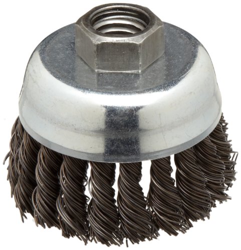 Weiler Vortex Pro Wire Cup Brush, Threaded Hole, Carbon Steel, Partial Twist Knotted, 3" Diameter, 0.02" Wire Diameter, 5/8"-11 Arbor, 14000 rpm (Pack of 1)