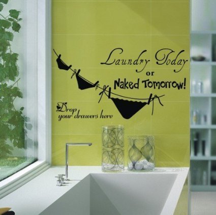 Amaonm® Black Laundry Today or Naked Tomorrow Wall Decals Wall Quote Saying Lettering Removable Vinyl Wall Sticker Mural Art Home Room Decoration...