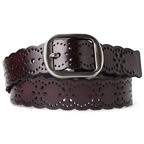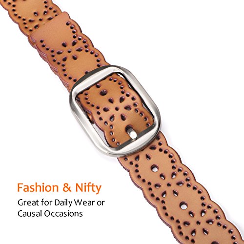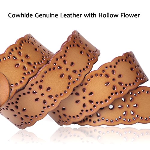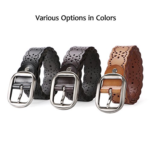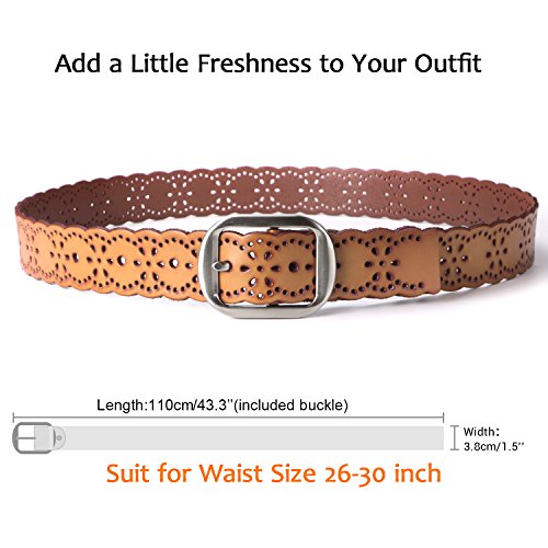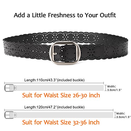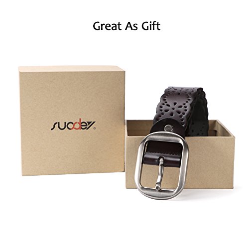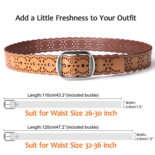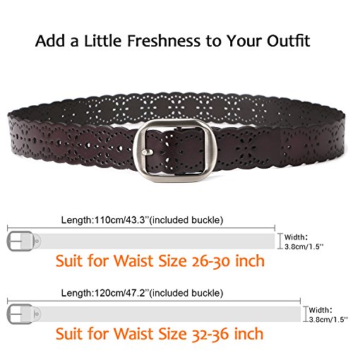 Never Feel Enough for Trendy Accessories,Belt is Always The Finishing Touch to Your Clothes. Come to find your favorite belt in SUOSDEY store. Higher-End Fashion: This hollow floral designed women leather belt is fashion and nifty, shape your waist well when you wear it. Perfect for parties and events or for daily wear. Superior in Quality: SUOSDEY women belt is made with high-quality genuine leather enable for long time use,which is very soft and comfortable to wear. Belt Size: Belt Length: 110cm/43.3',Width: 3.8 cm/1.5'. Suit for waist from 26-30 inch. Trim to fit: If the belt is too long for you,you can cut to fit your size, and make a hole with the puncher. Customer Care: We aim to bring high quality belts for everyday wear, with affordable price, quick delivery and superb customer service. Any questions will be responded in 12 hours with satisfied solution, enable you risk-free purchase in SUOSDEY store. Great for Everyday Wear or Most Causal Occasions: You have muticolor options:Black,Coffee,Brown for your casual wear for dresses / jeans /any other pants. It's a wonderful match to your favorite Jeans in all seasons.this fashion leather belt for women Suit for waist size from 32-36 inch. Belt length:120cm/47.2',Width: 3.8cm/1.5'. 0