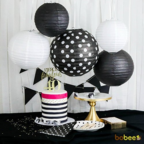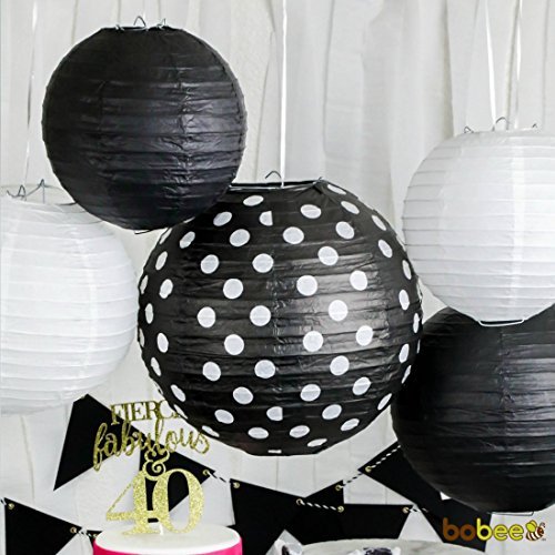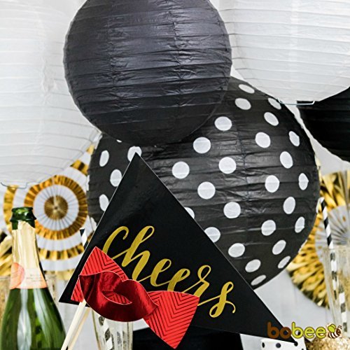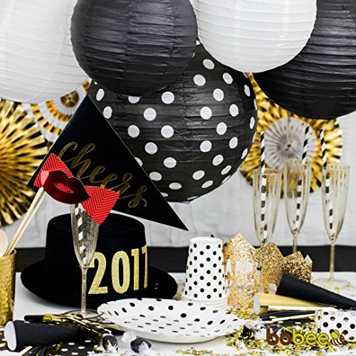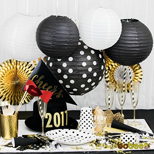 Bobee Paper Lanterns Retirement Party Supplies New Years Eve Decorations, Black/White, Set of 5
