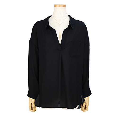 -. Title : ロング丈スキッパーシャツ★ネックレス付(f170019) (ブラック) [並行輸入品]