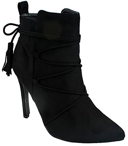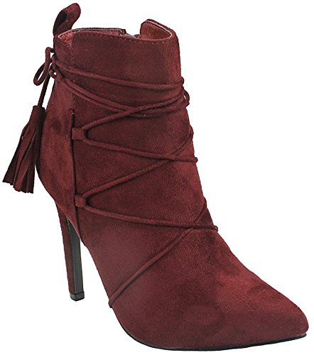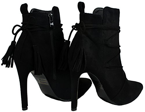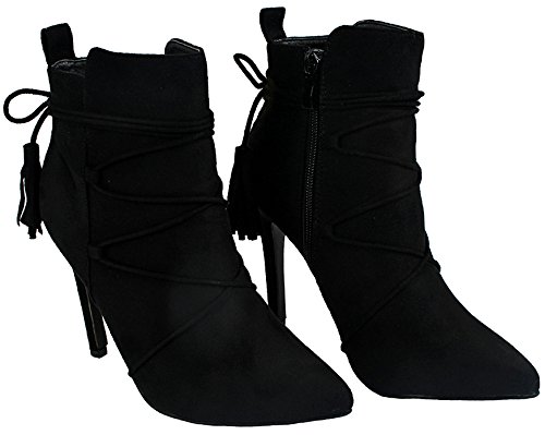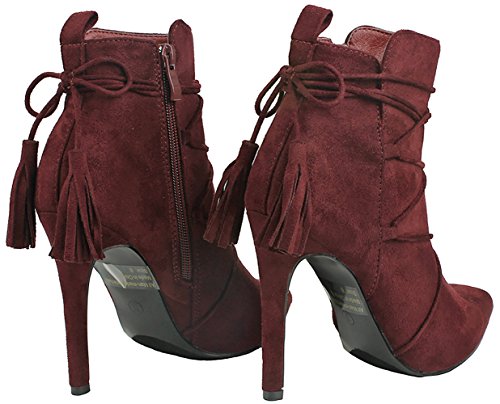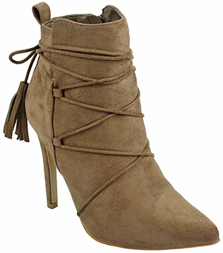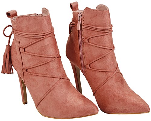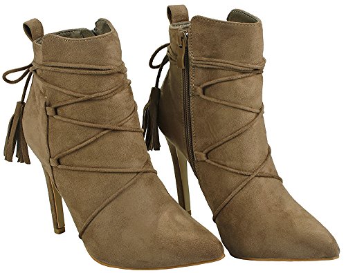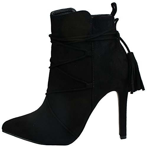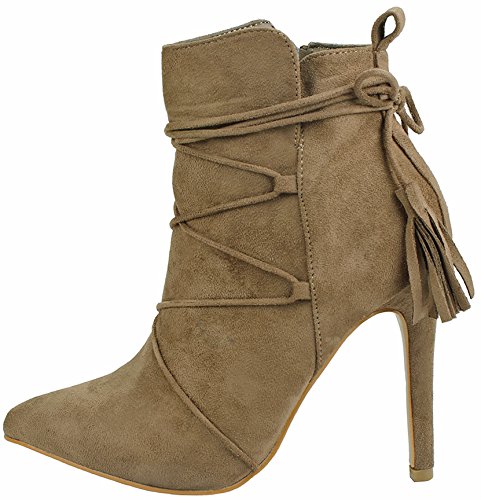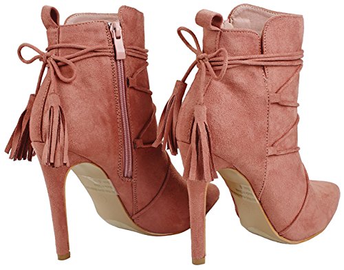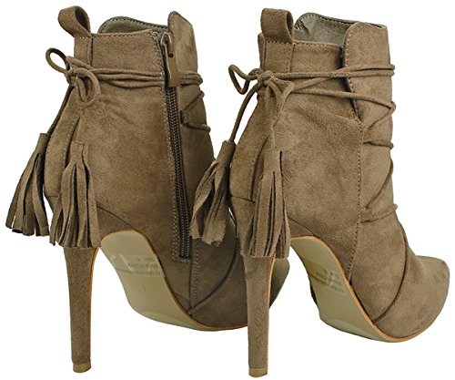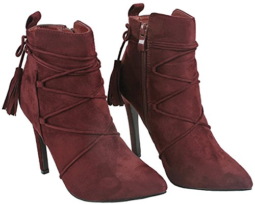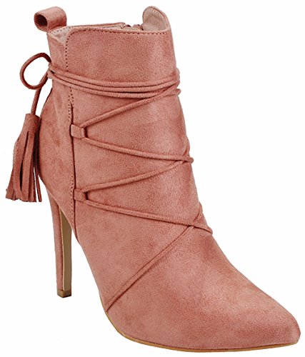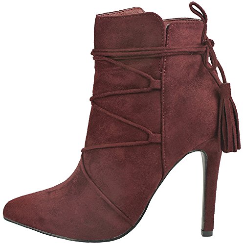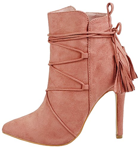 JJF Shoes Women Audrey Tassel Decor Pointed Toe Faux Suede Zip Soft Fur-Lined Stiletto Heel Ank...