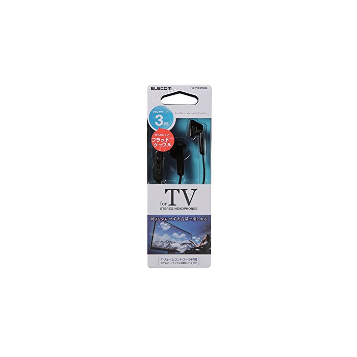 ELECOM 에레콤 스테레오 이어폰 음량 조정부 모노럴/스테레오 교환 스위치부 얽히 # 어려운 플랫인 롱 케이블 3.0m 블랙 EHP-TVIE0230BK