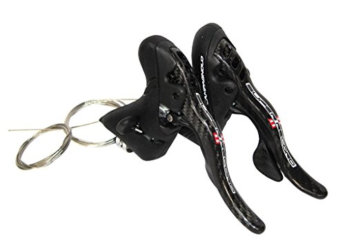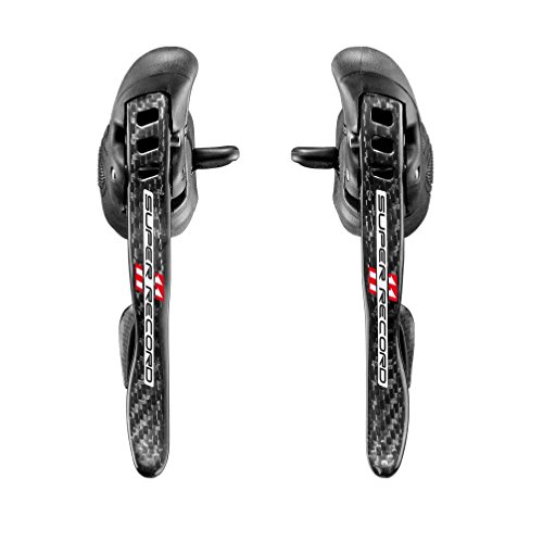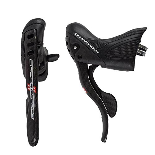Studio : Campagnolo Publisher : Campagnolo Binding : Misc. Product Description How do you improve on a legend? The simple answer is to make it work better, and that's exactly what Campagnolo did with its Super Record Road Bike Brake Levers with Integrated Shifters. As with all the Ultra-Shift levers, the Super Records allow you to upshift up to 3 gears or downshift 5 gears with a single motion. The improvement lies in the amount of cable that's pulled. The new shifters provide faster, more precise shifting. Unfortunately, this also means that the new shifters are not compatible with the 2014 drivetrain. The new Vari-Cushion silicone rubber hoods employ varying densities of hypoallergenic silicone and an internal waffle pattern for added padding. The shape is upgraded, as well, with a more ergonomic feel. The new levers are made with titanium internals. They also incorporate an improved pivot point that gives you as much braking power on the hood as you have in the drops. 0