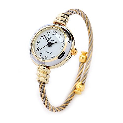 -. Title : 2Tone Gold Silver Cable Band Ladies Bangle Cuff Watch
