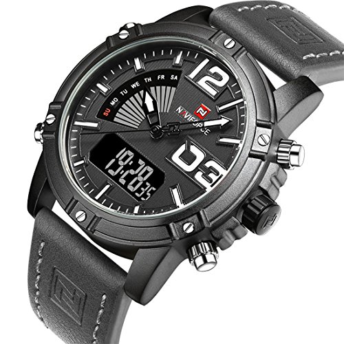 -. Title : Tamlee Fashion Waterproof Digital Analog Men's Sport Watches with Leather Strap Alarm Chime hourly Backlight