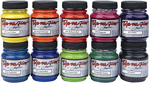 Dye-Na-Flow Specialty Paint Set comes in a jar of capacity 2.25 oz and is ideal for silk painting, tie dying, watercolor, airbrush, salt techniques, sponge applications or for use with simplified batik and wax resists. Set that includes brilliant red, sun yellow, azure blue, bright green, bright orange, magenta, violet, chartreuse, turquoise and black colors.Feature