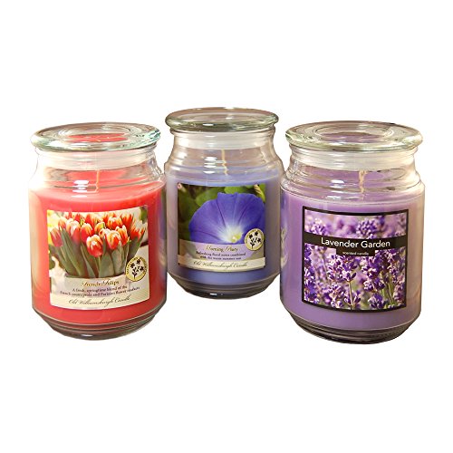 LumaBase 27003 3 Count Floral Collection in Jar Scented Candles, 18 oz, Multicolor