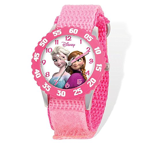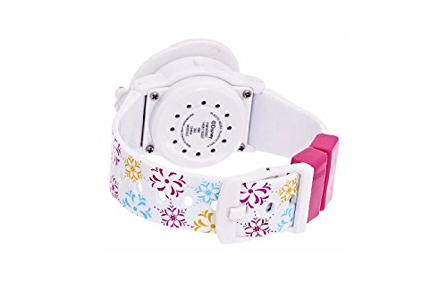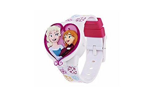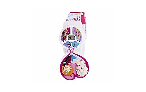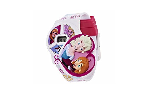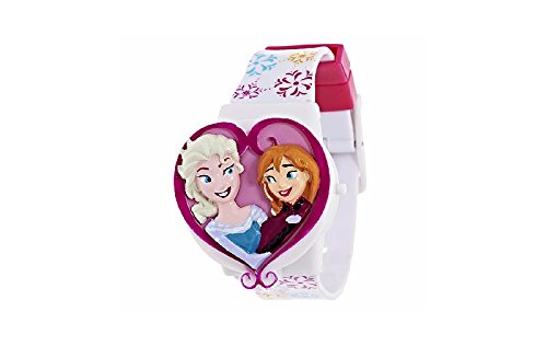 It'll always be the perfect time to "Let It Go" with this musical Elsa and Anna watch from Disney's Frozen. The swivel cover with Anna and Elsa on top opens to display the time and date on a digital LCD. And, "Let It Go" plays when either of the top two buttons are pressed.Feature