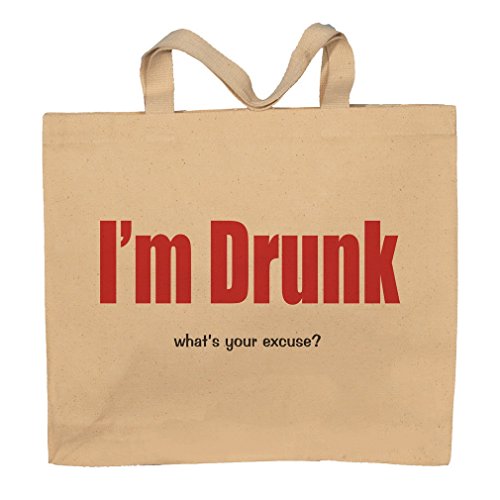 Binding : Apparel Product Description I'm Drunk what's your excuse? . A Fun way to show how you feel with a totebag. The Design/Saying is printed on the front of this canvas tote bag. We use the newest best technology to print the design with great inks that are cured into the product. This new high tech way of producing garments is very fade resistant. WE DO NOT USE TRANSFERS. It is great, since you dont have that thick transfer feeling. The feel is very smooth and comfortable. 0