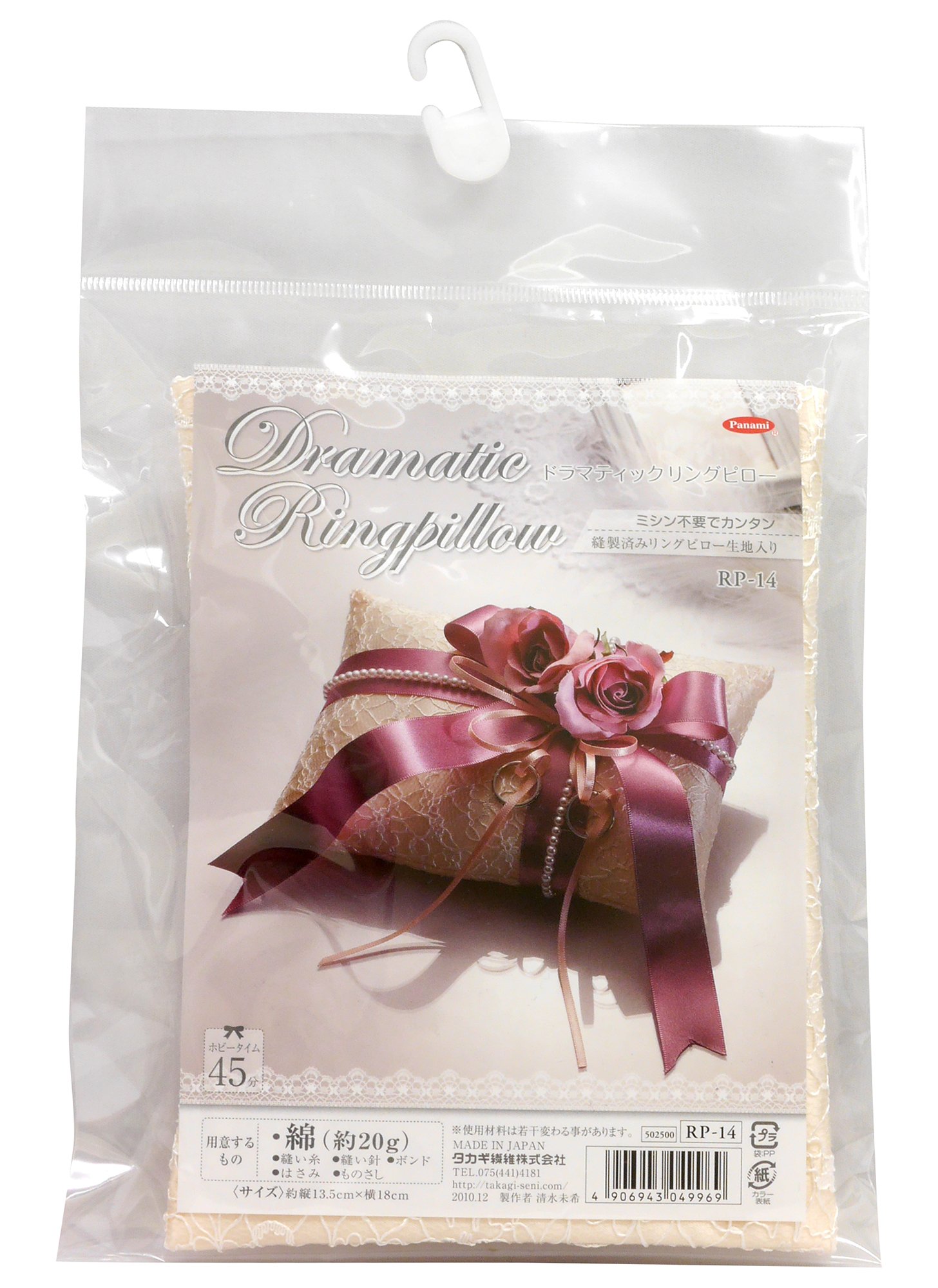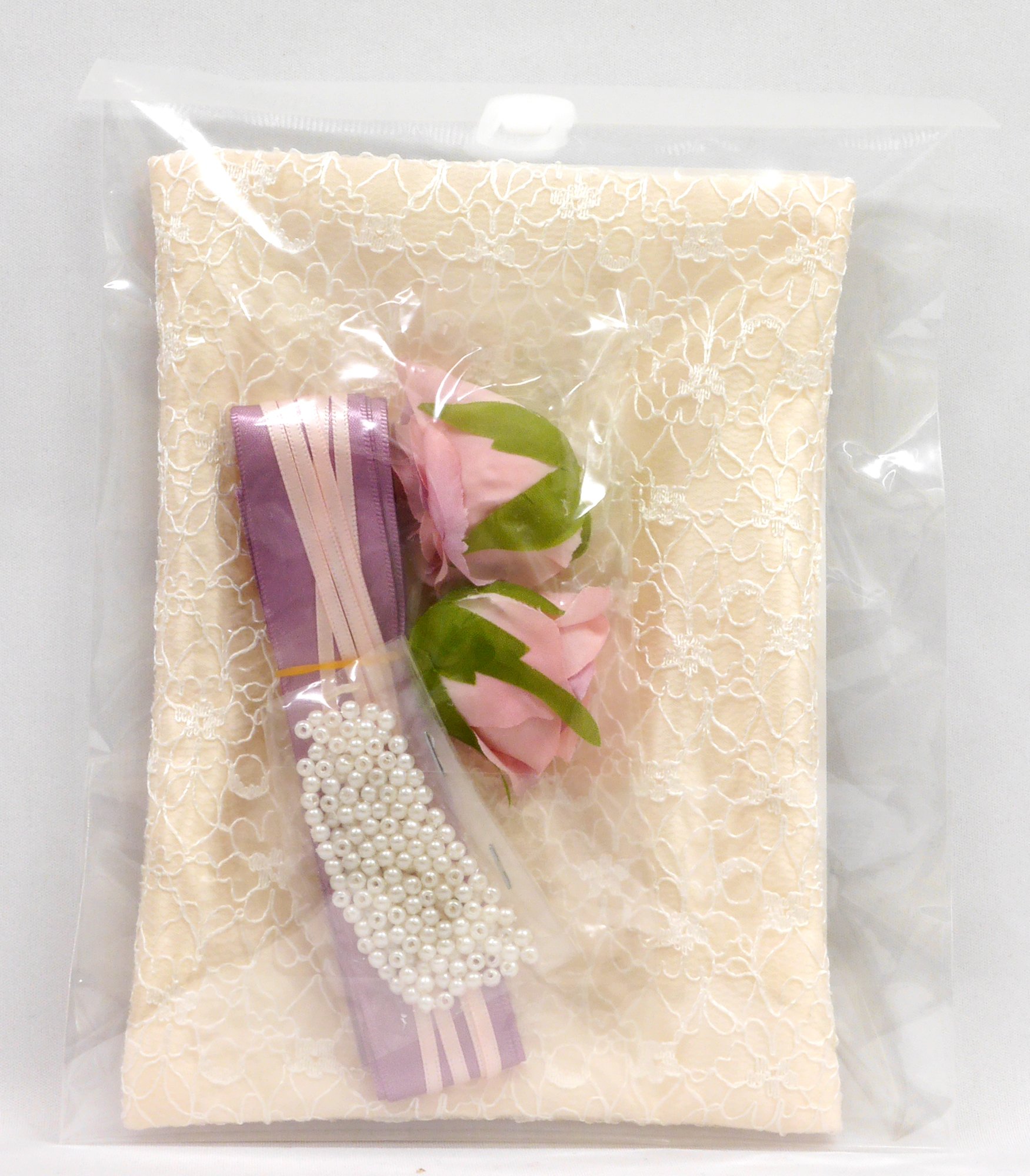 A ring pillow making kit that can be made easily without needing a sewing machine.