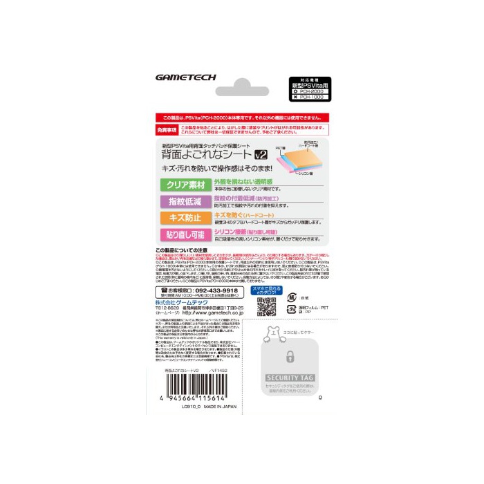원본상품명: PSVita(PCH-2000)用背面タッチパッド保護シト『背面よごれなシトV2』
