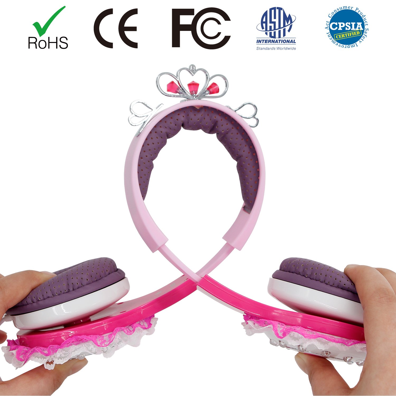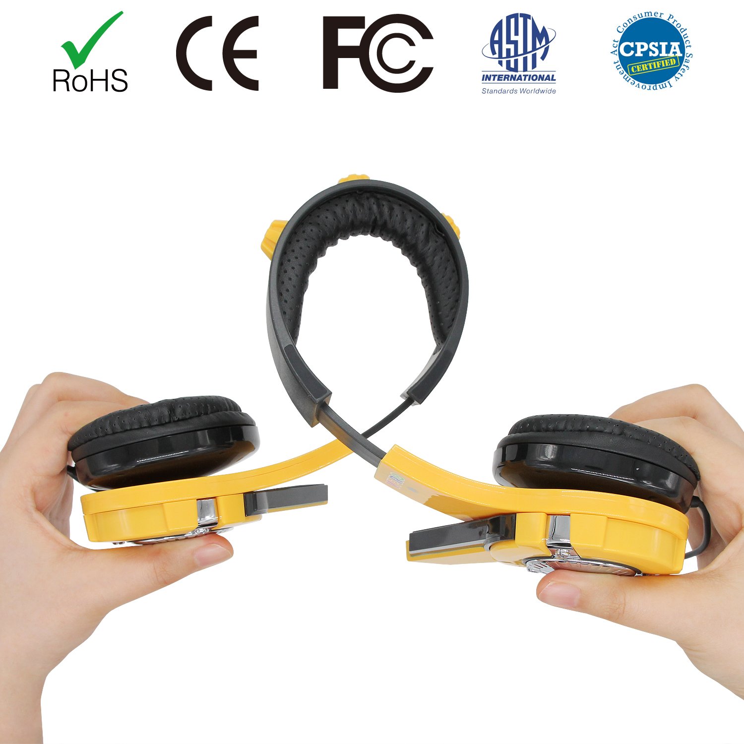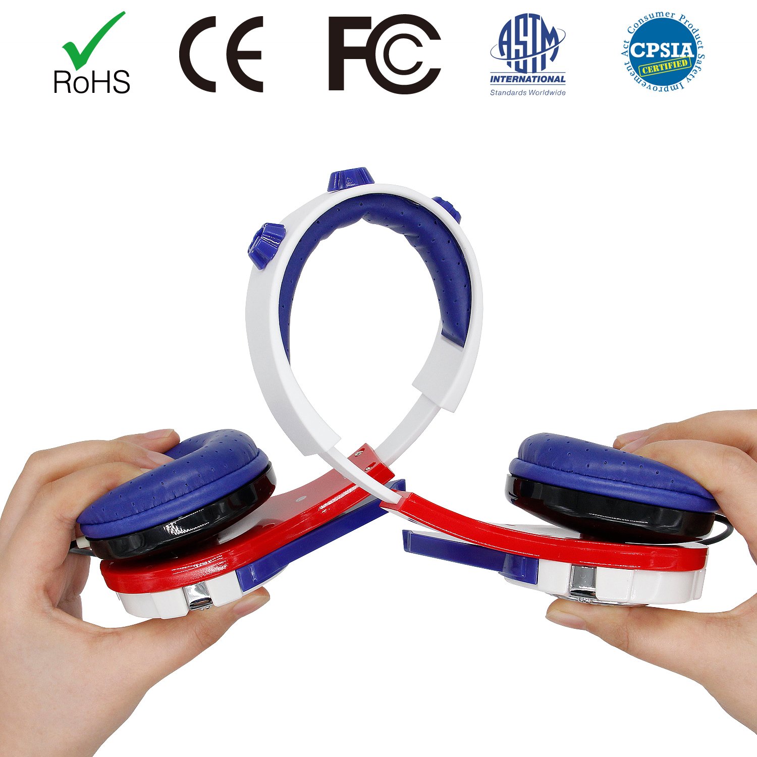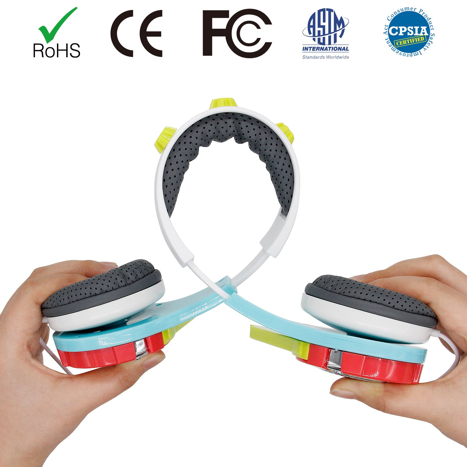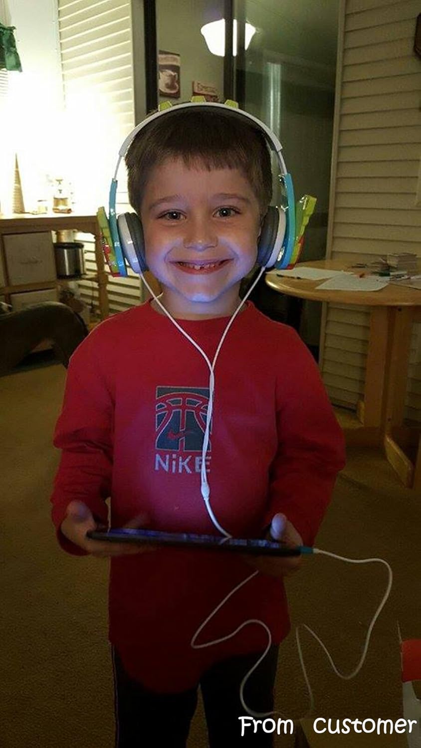 Kids Friendly Headphones: Suitable for all kids over age 3+ and up. Built-in volume limit technology at a safe level for children. With an adjustable headband to ensure our child gets the right fit. With soft and comfortable over-ear pads, skin friendly and breathable, the materials used are safe for kids listening to their music and play on media devices for long period of time in a total comfort. FCC and CE ect approved.