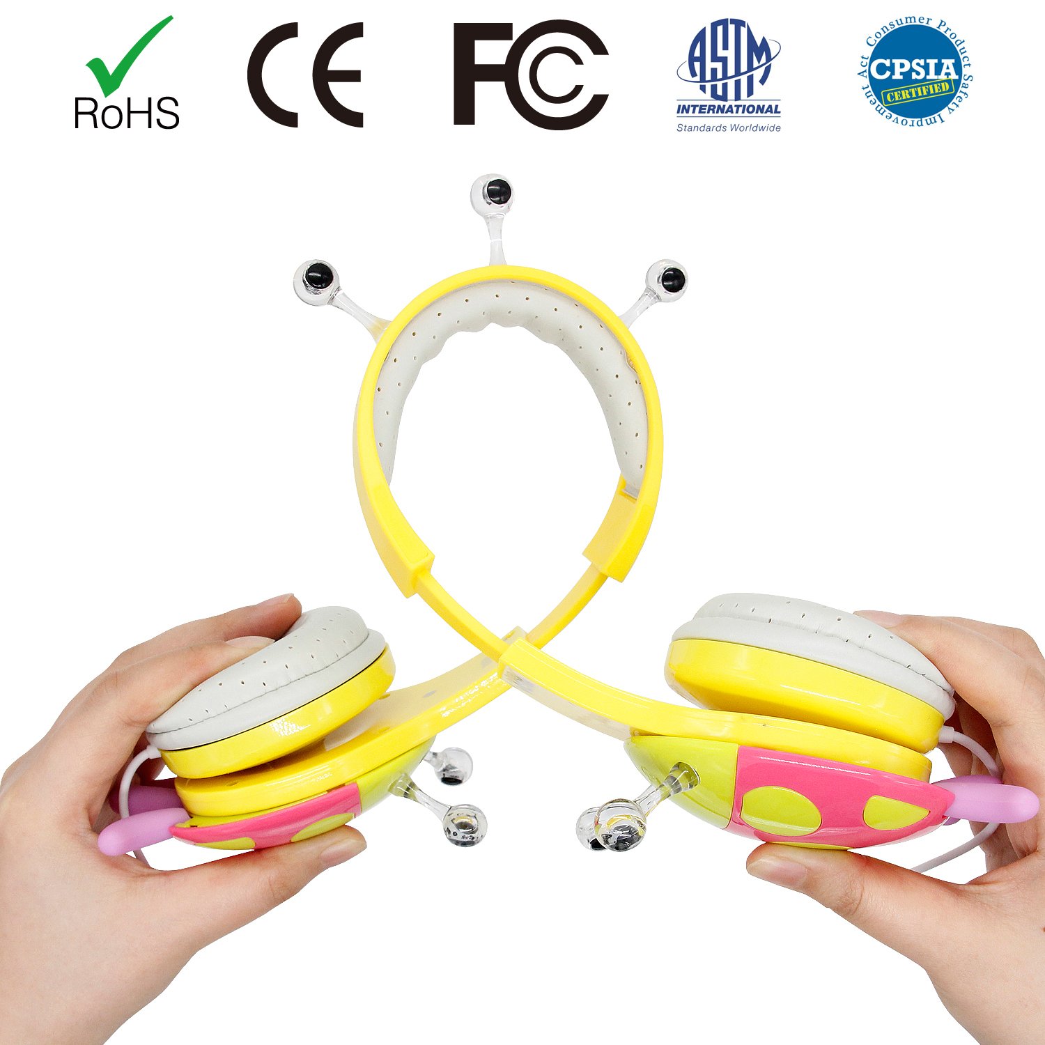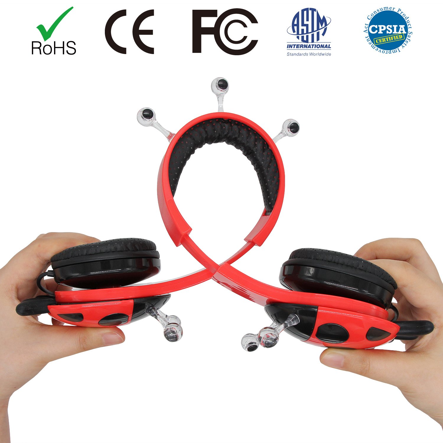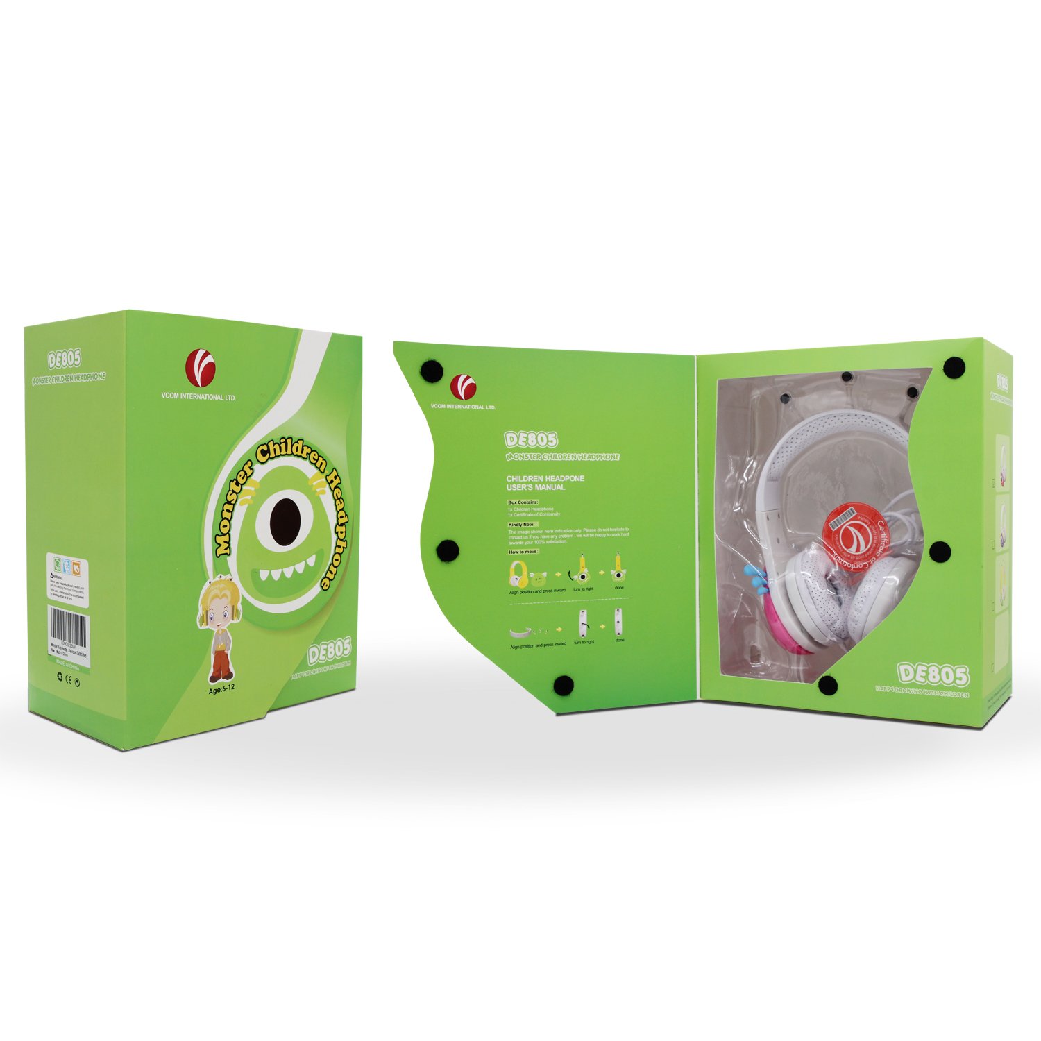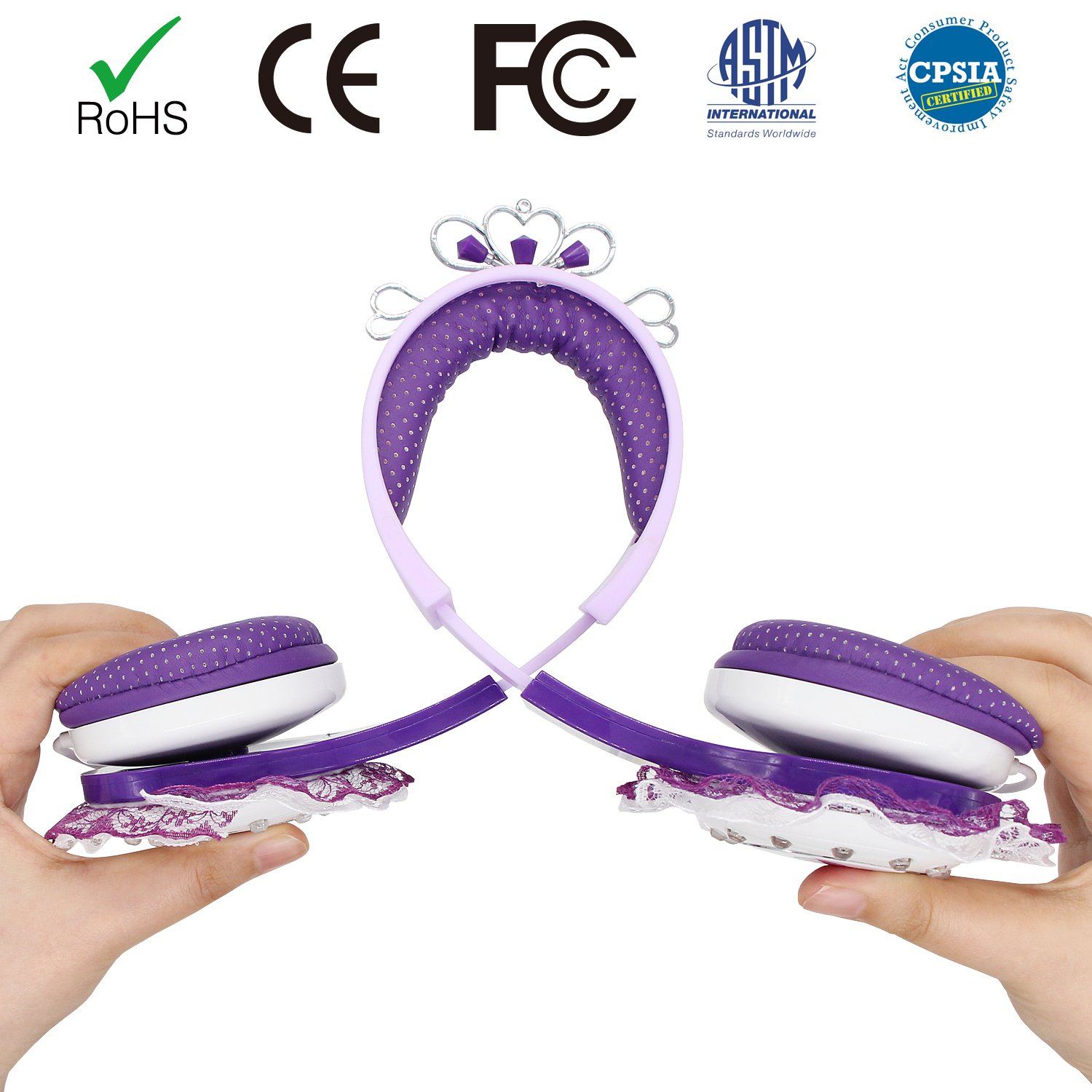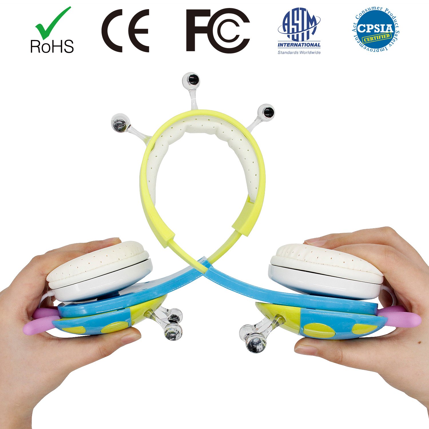 Kids Friendly Headphones: Suitable for all kids over age 3+ and up. Built-in volume limit technology at a safe level for children. With an adjustable headband to ensure our child gets the right fit. With soft and comfortable over-ear pads, skin friendly and breathable, the materials used are safe for kids listening to their music and play on media devices for long period of time in a total comfort. FCC and CE ect approved.