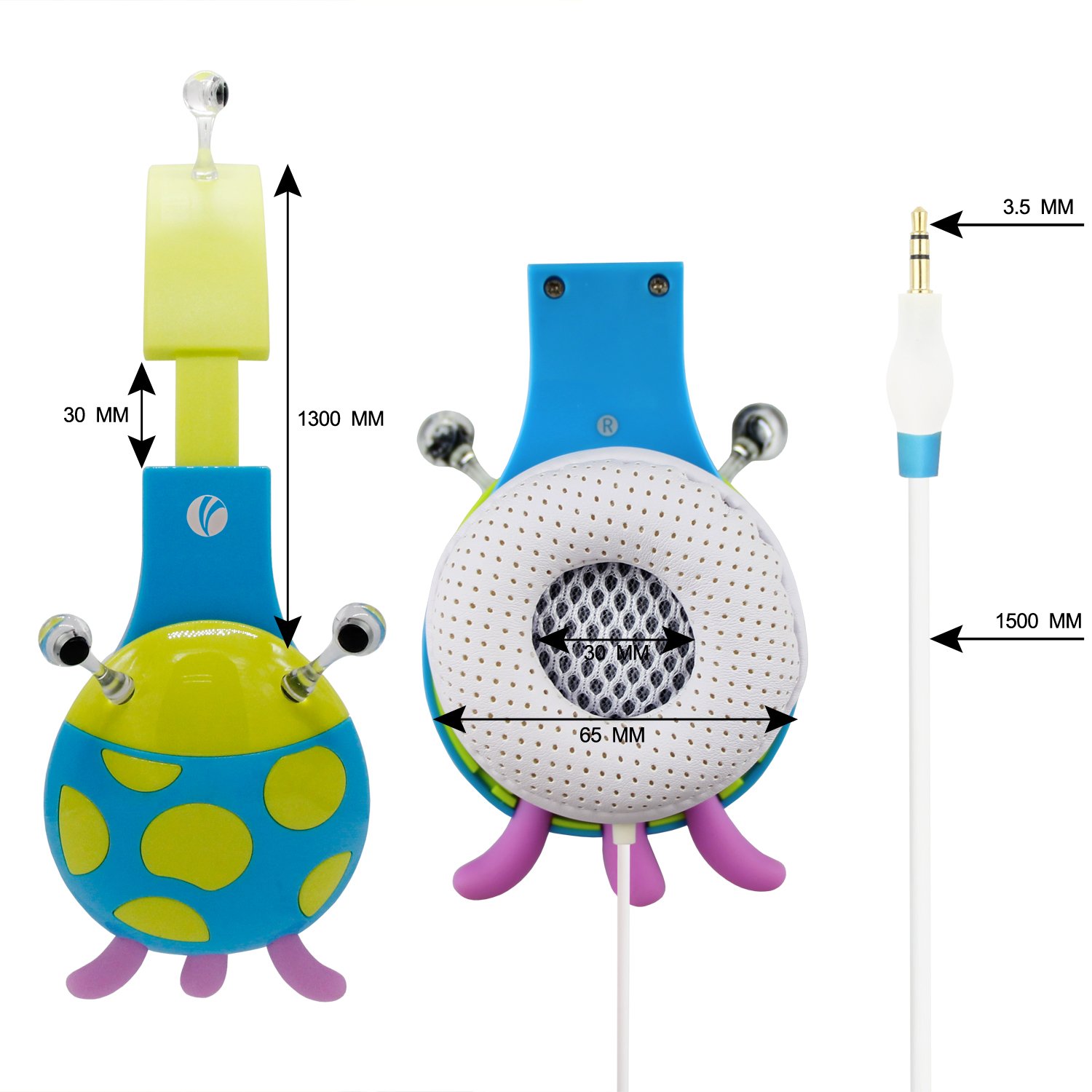 Kids Stereo Headphones:Manufactured with the kids stereo headphones deliver decent -clear sound and block outside noise. 1.5M cord length with 3.5mm audio gold plug, gold-plated contacts also ensure the clean sound experience possible.