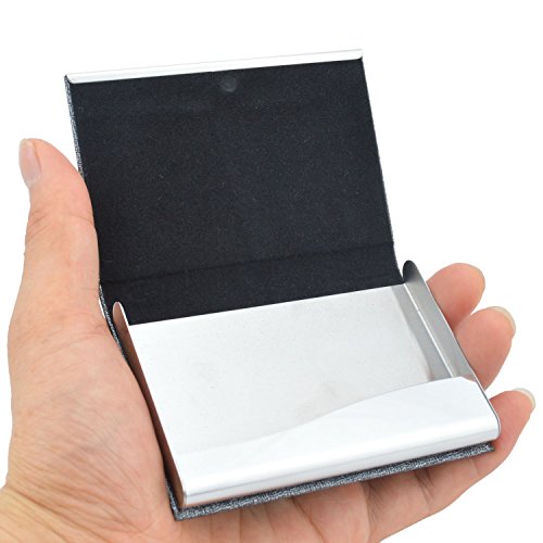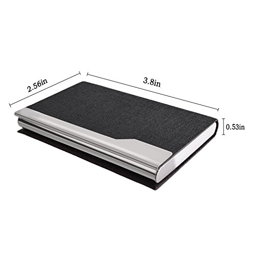 Material: the card case is made of premium stainless steel and leather. Size: 3.8"L x 2.6"W x 0.5"H