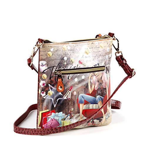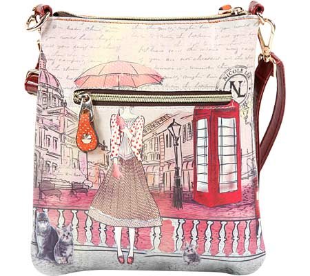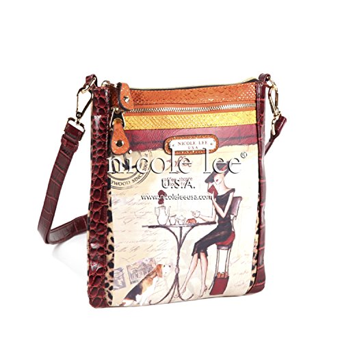 -. Binding : Apparel -. Brand : Nicole Lee -. Department : womens -. Feature : Dimensions: 10.5" x 9" x 1.5" / Drop Length: Drop (distance from shoulder or handle to top of bag): 15" / Features of this item include: Animal Print, Casual, Sling, Top Zip -. Label : Nicole Lee -. Manufacturer : Nicole Lee -. Model : Nicole Lee Claire Blocked Euro Pt Msg -. NumberOfItems : 1 -. PackageQuantity : 1 -. ProductGroup : Apparel -. ProductTypeName : HANDBAG -. Publisher : Nicole Lee -. Studio : Nicole Lee -. Title : Nicole Lee Claire Blocked Exclusive Print Messenger Bag(Thoughts of You)