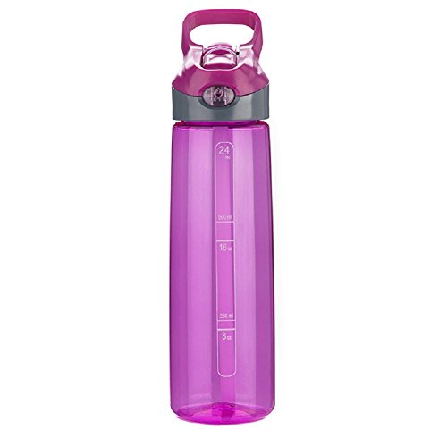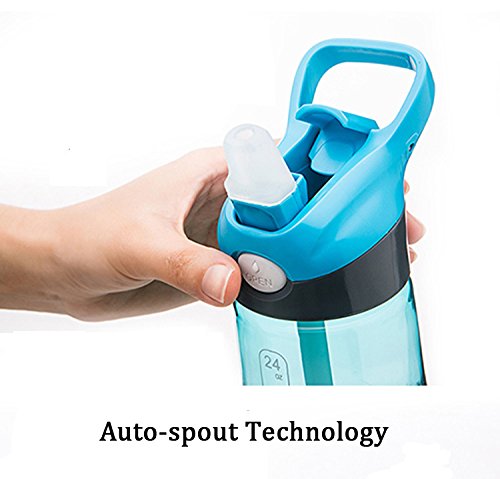 -. Feature : All the parts are BPA Free, lighter than common plastic and more wear-resistant than steel aluminum bottle. / Long straw and flip up spout design provides a faster flow and make you easily drink even the bottom water, also avoiding the spill problem / One button to switch the hiding nozzle, dust proof and convenient. Auto-spout technology keeps your water bottle from leaking. / Large capacity: Dimension: 10.8X3.0 inches.24oz/700ml let you get enough hydrating. / Wide mouth is easy to clean and convenient for putting ice, tea, fruits into the bottle.