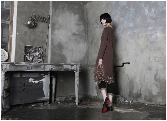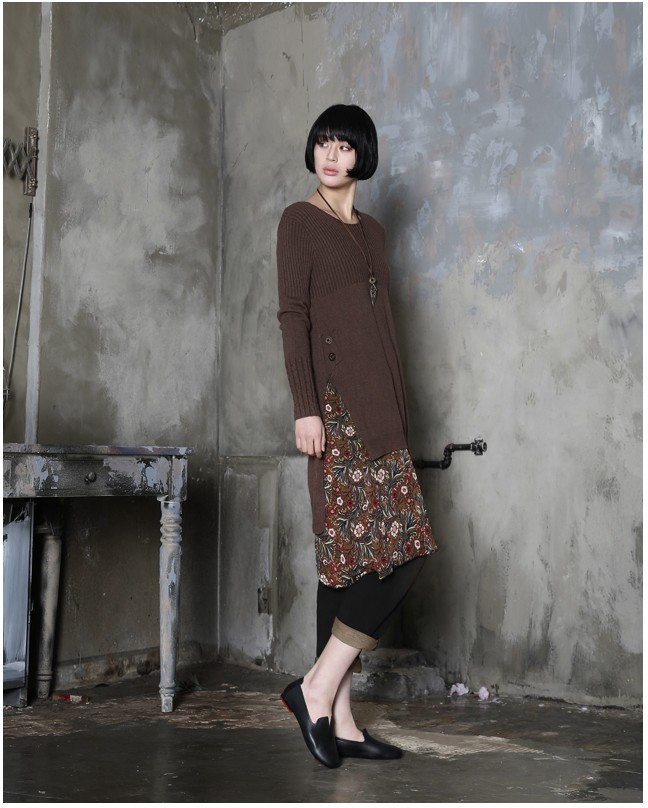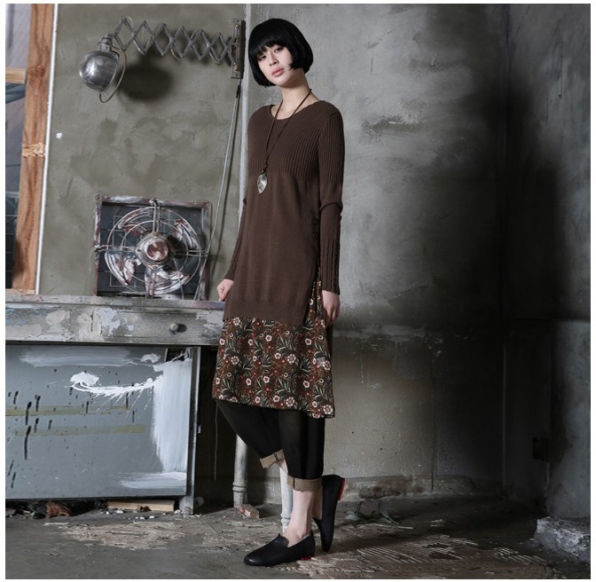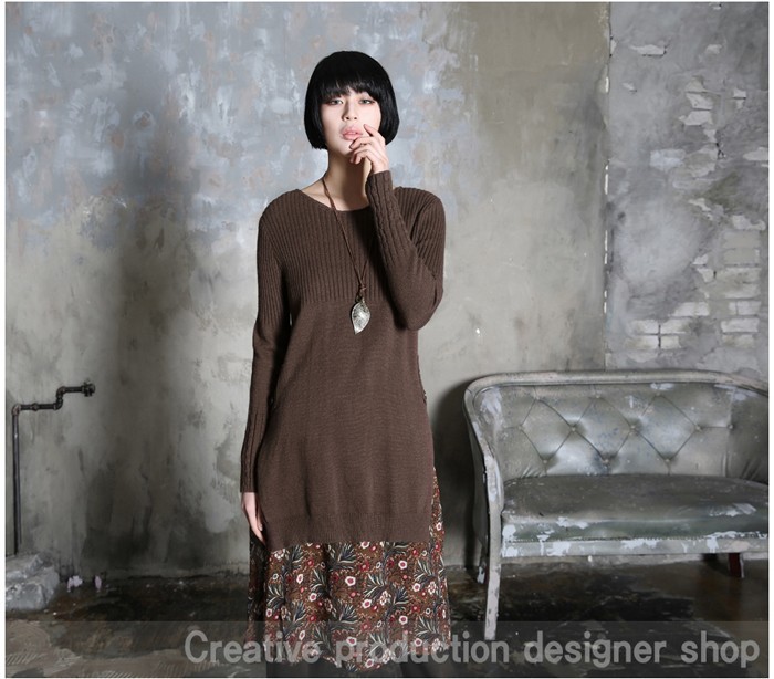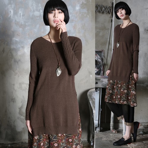 商品名:ニット レディース ワンピース 長袖 フェイクレイヤー 秋 冬 2017 モード系 個性的 40代 ファッション