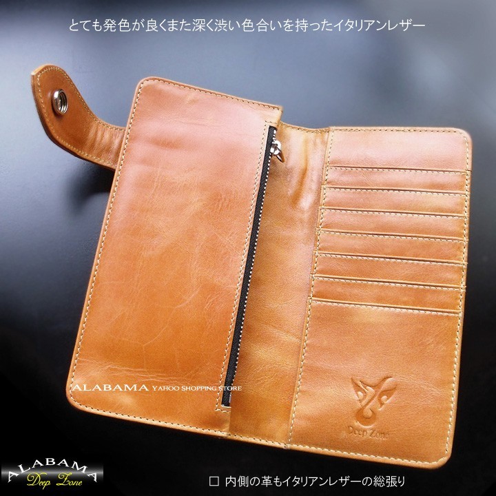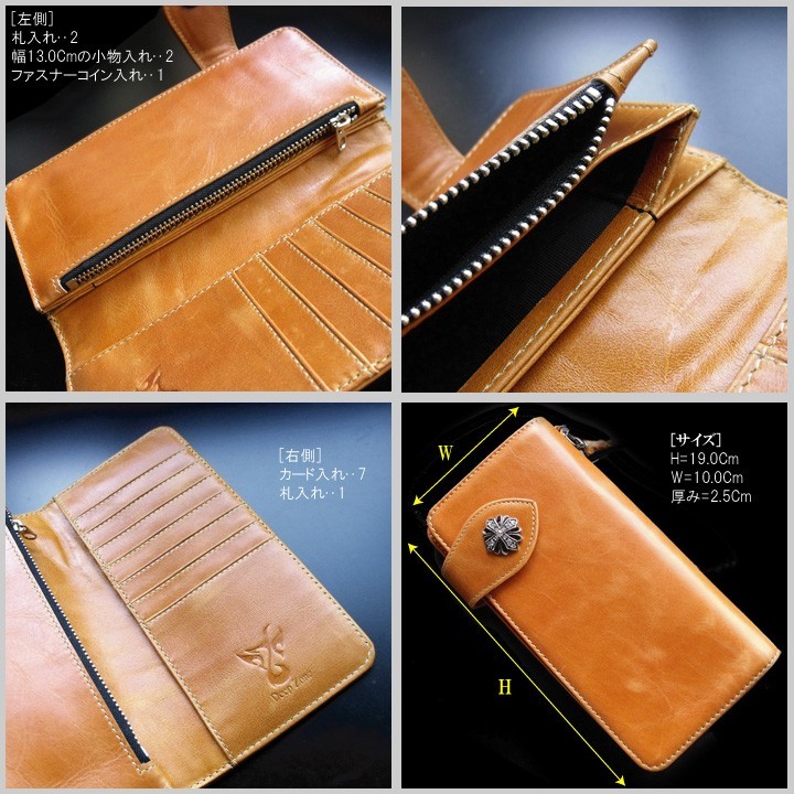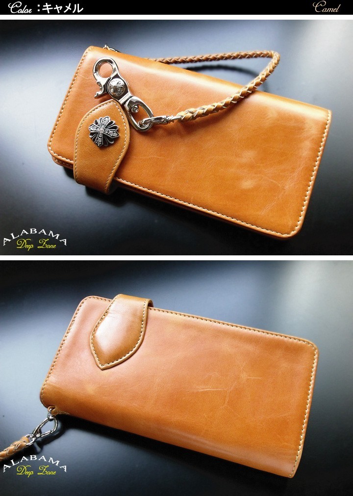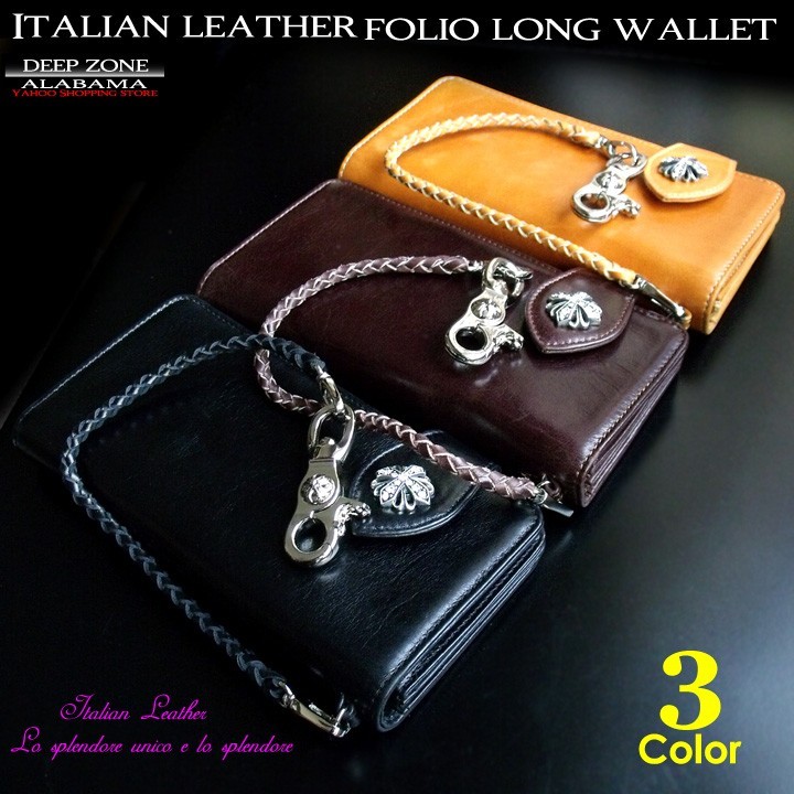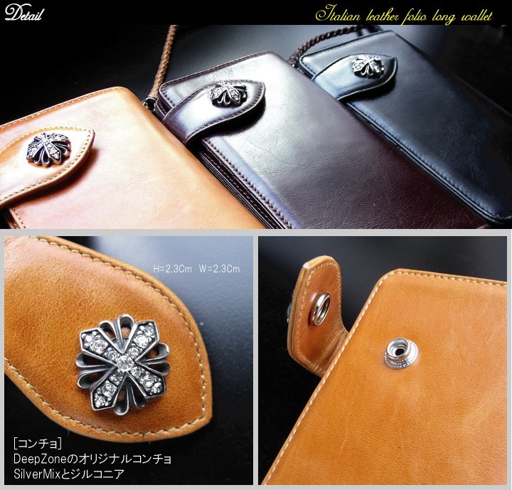 【Deep Zone】ワイルドでセクシーを上品にまとめる男のレザーブランド。自分買いからプレゼントにも人気でオススメです。イタリアンレザーの非常に味わい深い素材感独特の光沢と艶が特徴!二つ折り長財布同素材のウォレットロープにの先にはクロスキーリングSILVER MIXとジルコニアのコンチョオリジナルデザインロングウォレットです。【カラー】キャメル・ブラウン・ブラック【素材】ウォレット・ロープ 表側:牛革 内側:牛革 プレゼント ギフト財布 メンズ 長財布/財布 さいふ サイフ