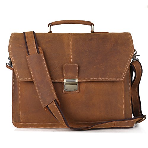 -. Binding : Shoes -. Brand : Kattee -. ClothingSize : Large -. Color : Brown -. Department : mens -. EAN : 0612306267737 -. Feature : 100% Guarantee genuine - excellent crazy horse leather / Top zipper closure / Single handle approximately 2" long 5" drop be able to used comfortably, including an extra adjustable long strap; May be used as laptop bag, business bag, handbag, messenger bag / The front flat with push button fastening is great for quick-access items, while the Slot pocket main compartment protects a laptop and files / Inside is nicely lined with durable fabric, has 1 zippered pocket, and has 1 fit ipad pocket, and has 1 wall zippered pocket and zippered middle compartment, and has 2 additional pockets (fits for mobile telephone pockets and wallet pocket -. Label : Kattee -. Manufacturer : Kattee -. Model : XZ316BN -. MPN : XZ316BN -. PackageQuantity : 1 -. PartNumber : XZ316BN -. ProductGroup : Apparel -. ProductTypeName : APPAREL -. Publisher : Kattee -. Size : Large -. Studio : Kattee -. Title : Kattee Vintage Top Leather Briefcase Messenger Bag with Push Button -. UPC : 612306267737