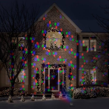 Get into the Christmas spirit and enhance your holiday decor with this amazing and impressive Lightshow Projection Points of Light machine. It adds multicolor beams and effects to almost any wall or flat surface. This Gemmy Lightshow projector deluxe with remote and 98 programs enables you to select a combination that's just right for your Yuletide display. Add your favorite music for a light and sound show. Impress your guests this holiday season with a beautiful and festive display with this fun appliance. It uses bright LED bulbs for energy efficiency and many years of holiday entertaining with family and friends. Lightshow Projection Points Of Light Deluxe with Remote, 98 Programs: Deluxe Gemmy Lightshow projector with 4-button remote and 98 functions The projector uses bright, energy-efficient LEDs It projects multicolor lights and effects onto any wall or flat surface Christmas light projector is made out of plastic and electronicsFeature
