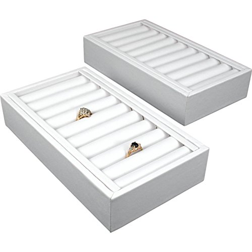 -. Title : 2 White Leather 9 Bangle Bracelet Jewelry Display Trays