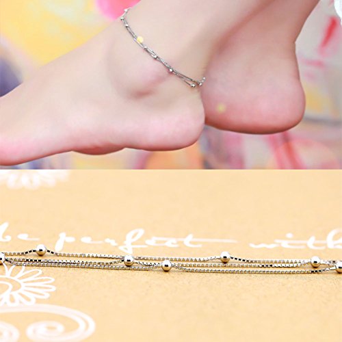 -. Feature : Material: Platinum Plated 925 Sterling Silver. / Size: about 210mm in perimeter, the chain extension about 30mm, the big bead about 4mm in diameter, the small bead about 1.8mm in diameter. / Anklet, or bracelet? This can be daily wear and holiday jewelry gift for girl friends. / Fit for all occasions. / FREE GIFT BOX WITH EVERY PURCHASE: The jewelry comes in a pretty gift box. Best Choice for any Gift Giving Occasion, Great Gift for Girlfriend, Wife, Daughter, Mom or Friends on Christmas, Birthday, Anniversary, Thanksgiving Day, Mother's Day etc.