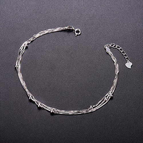-. Title : SHEGRACE 925 Sterling Silver Triple Layered Chain Anklets/Bracelet with Tiny Beads for Casual