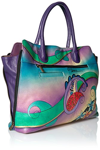 Anuschka Large Expandable Tote Paisley Collage Egg Plant