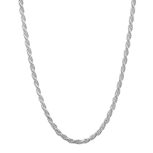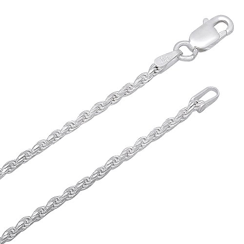 -. Title : 1.8mm Solid 925 Sterling Silver Diamond-Cut Rope Link Italian Chain