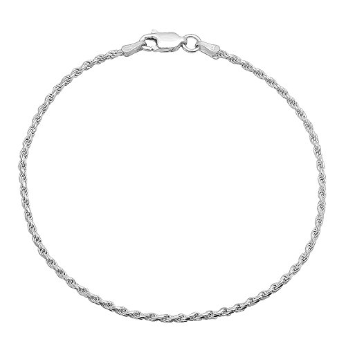 -. Feature : This solid sterling silver closely woven 1.8mm rope chain is made in Italy and offered in a variety of lengths, providing the option of selecting your preference of a bracelet, a necklace, or to create a customized matching chain & bracelet set by purchasing both a bracelet and a chain length your specified length options / Its links are tightly woven into a finished braid with a twisted, spiraling effect, while its overall shimmering shine is elevated by reflective diamond cuts / This nickel-free chain with a polished non-plated finish is hypoallergenic and stamped with the hallmark that denotes .925 pure sterling silver / Issued with a Certificate of Authenticity Guarantee and a Lifetime Warranty Card covering manufacturing defects in materials and craftsmanship / Includes a dual-layered Deluxe Microfiber Jewelry Polishing Cloth to clean, buff, protect and maintain brilliance